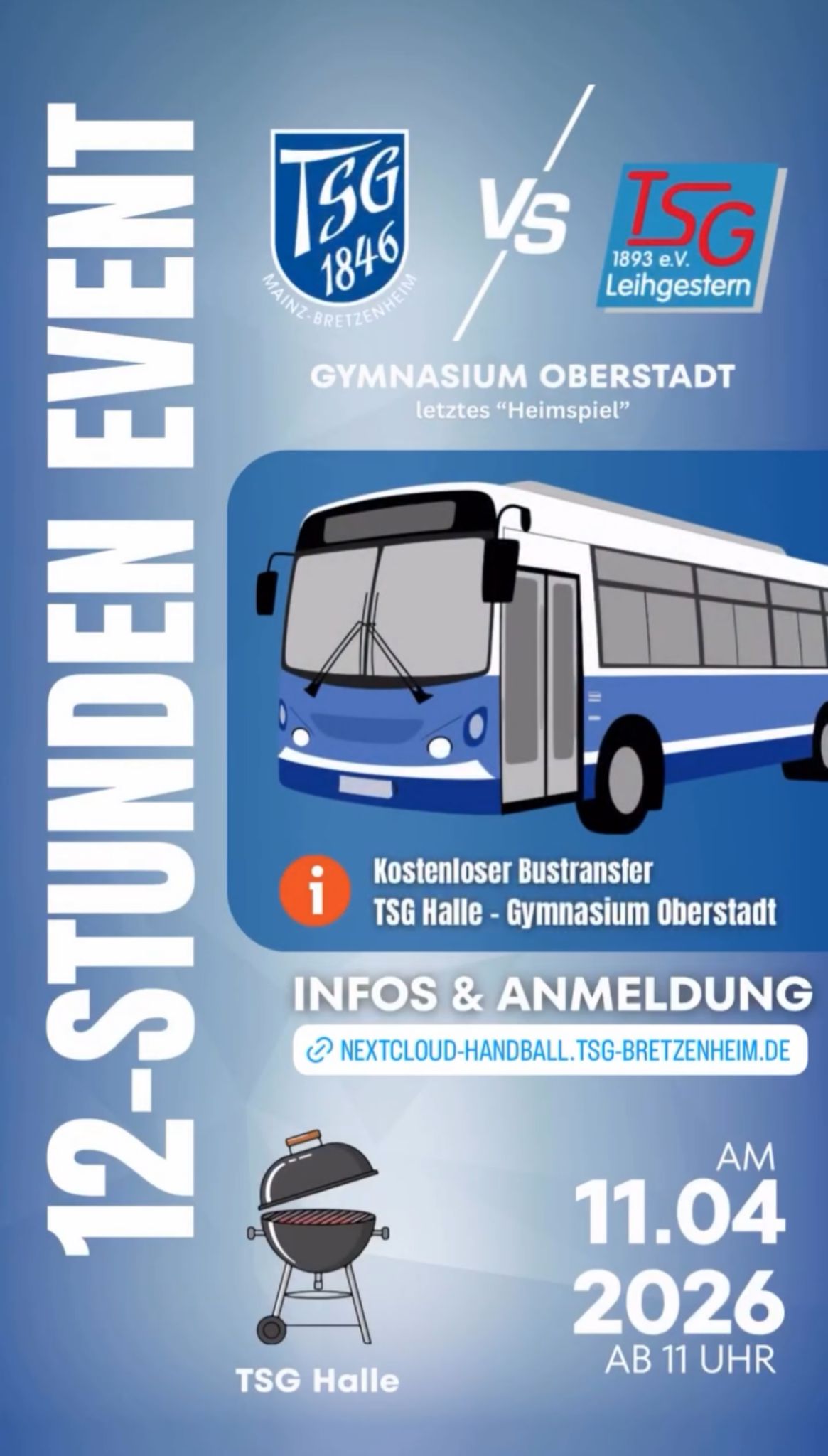 In diesem Sinne auf geht’s Sportsfreunde (egal ob Krabbler, Rentner, Zuschauer oder Aktiver) kommt mit zu diesem 12 Stunden Event ( sei es teilweise oder auch komplett 😎) und lasst uns die Oberstadthalle füllen und Blau Weiß schmücken. Wir freuen uns auf Euch!