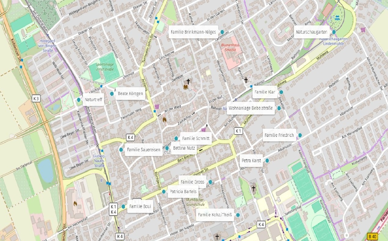 Diese Gärten und Höfe sind bereits gemeldet (s. Karte):
