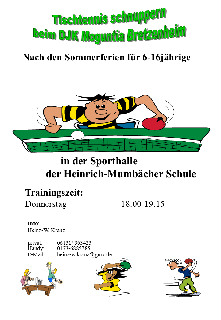 Nach den Sommerferien bietet die DJK Moguntia Bretzenheim wieder Tischtennis für Kinder und Jugendliche an. Kommt vorbei!