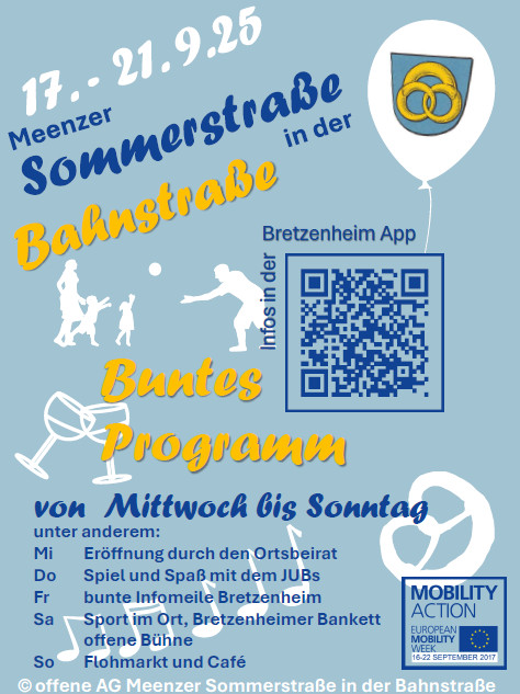 Die Meenzer Sommerstraßen öffnen den Verkehrsraum für ganztägige nachbarschaftliche Begegnung, gemeinschaftliche Aktionen und ein vielfältiges Angebot ohne fahrenden Verkehr. Der Bereich zwischen Bäckerei Werner und Anemonen Apotheke wird an 4 Tagen aus neuer Perspektive erlebbar werden. Zufahrten für Anwohnende, Liefer- und Einsatzfahrzeuge bleiben dabei natürlich jederzeit möglich.